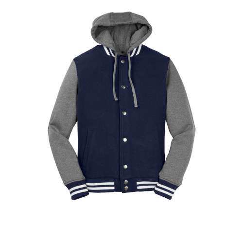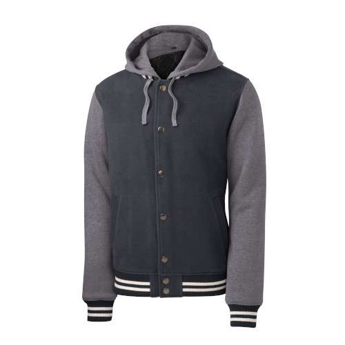 Our Cotton sleeved varsity jackets are a fun modern take an the vintage look of a varsity jacket. We have options for both a classic style and a removeable hoodie option. These are a much lighter option than any of the wool letter jackets that we offer, being made entirely of 9 oz. cotton instead of the much heavier 24 oz. wool.